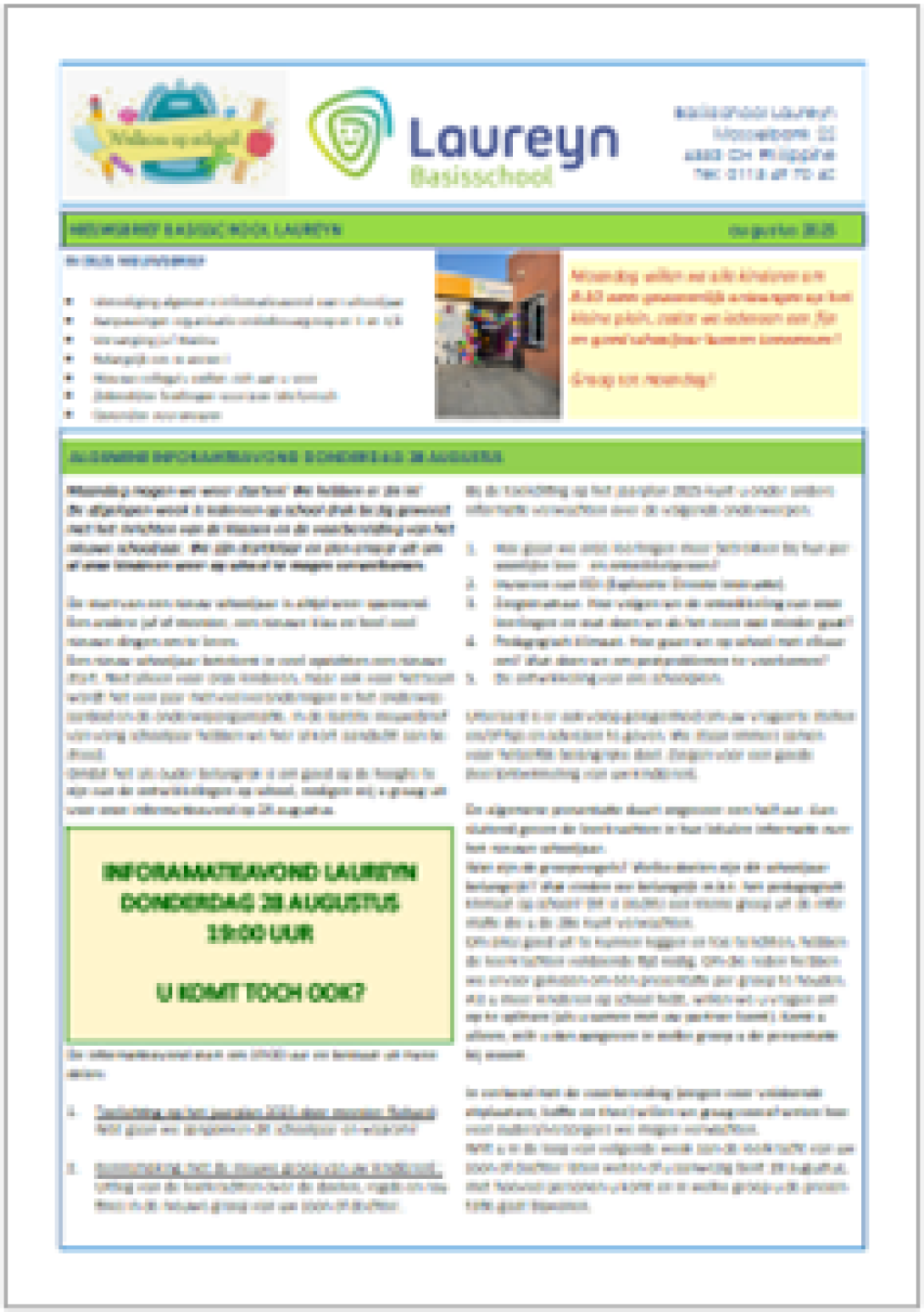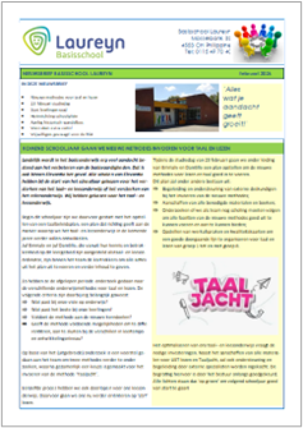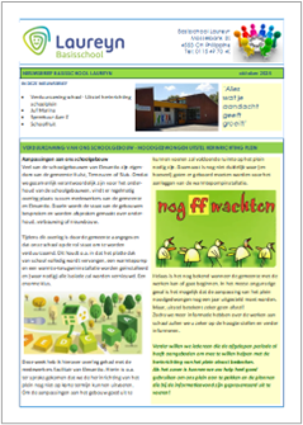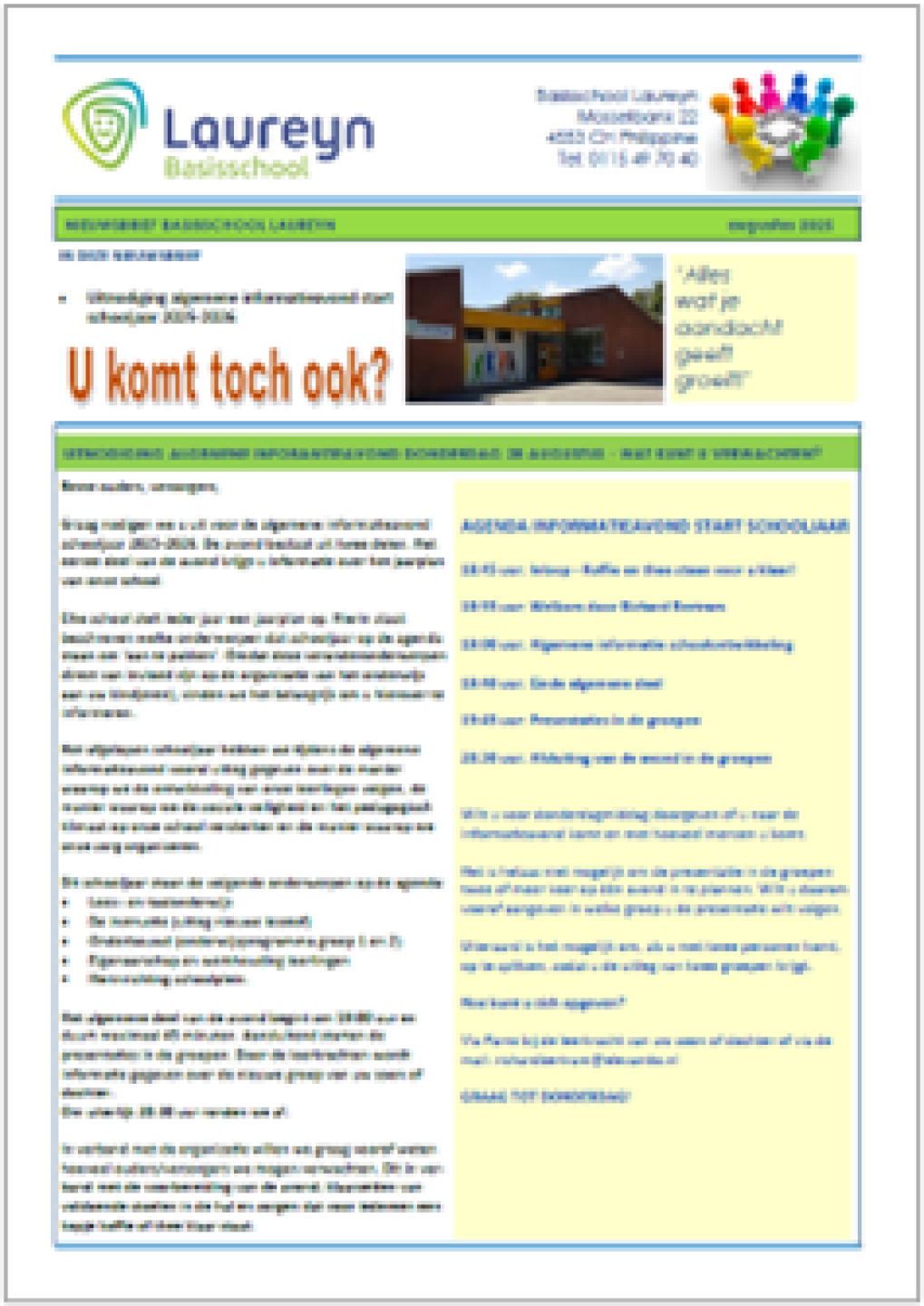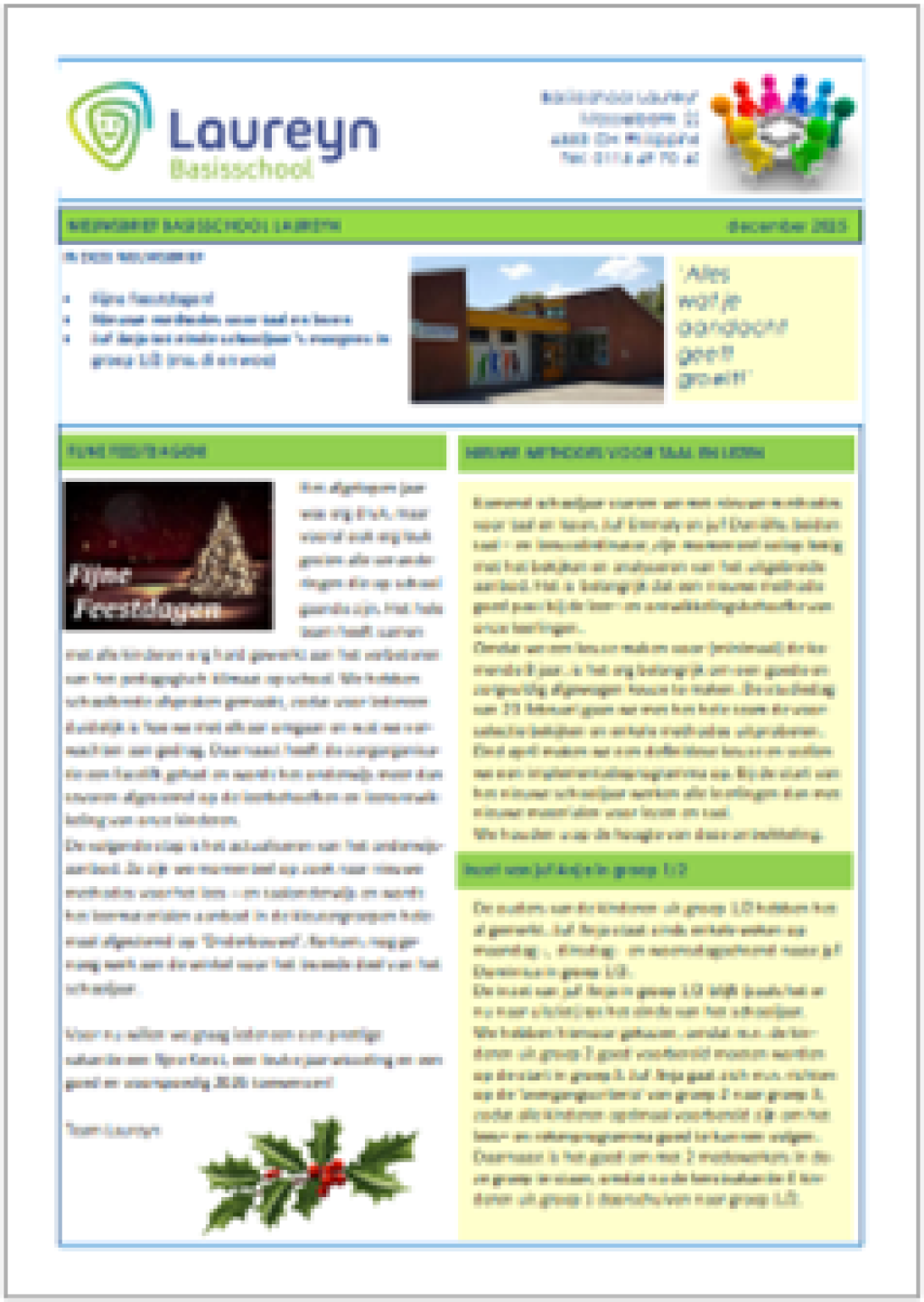 We vinden het belangrijk dat u goed op de hoogte bent van alle ontwikkelingen op onze school. Via de nieuwsbrieven wordt u daarover geïnformeerd. De nieuwsbrief komt elke vrijdag voor een vakantie uit.